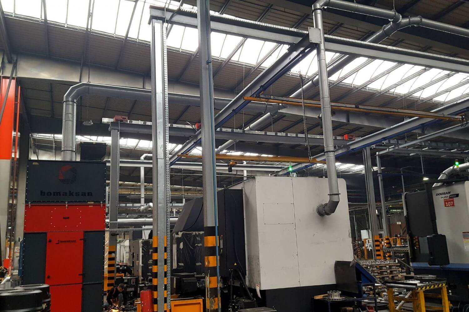 Dust and smoke released from various machines in EKU FREN company are absorbed at capacities calculated as a result of calculations made by Bomaksan engineers and filtered in PKFC model Jet-Pulse Compact Cartridge Filter unit and returned to the factory environment. In this way, a significant heat saving is provided, especially in winter.